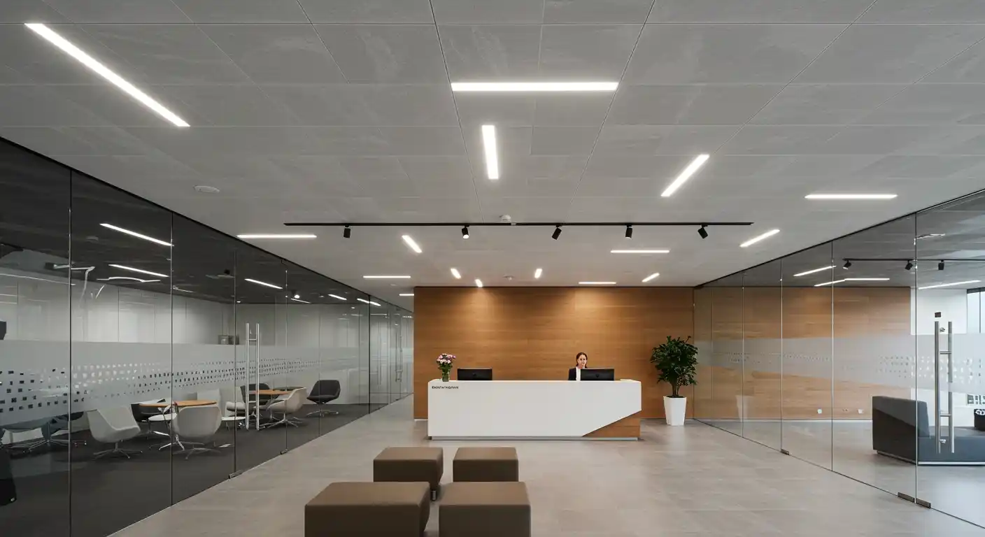 الإضاءة الخطية (Magnetic Track Lights): استخدام مسارات الإضاءة المغناطيسية السوداء الغائرة داخل الجبس لتعطي مظهراً صناعياً مودرن (Industrial Style).