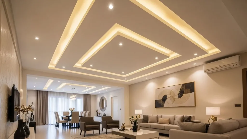 تتجه الموضة حالياً نحو التصاميم المودرن (Minimalist). الأكثر طلباً هو “بيت النور” المخفي، والأسقف المستوية (Flat) الخالية من الزخارف، بالإضافة إلى دمج الجبس مع شرائح “بديل الخشب” أو المعدن لإعطاء لمسة فخامة غير تقليدية.