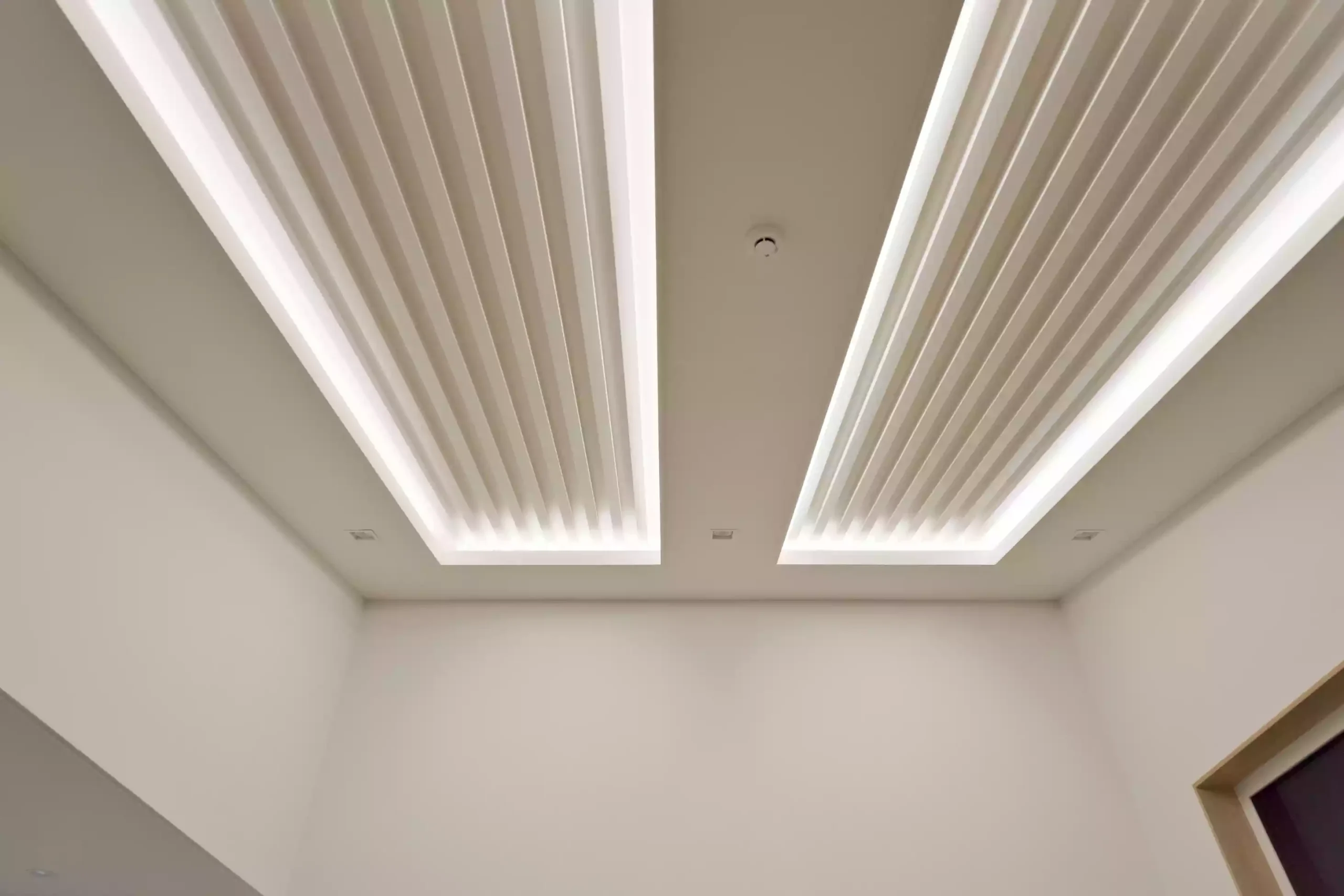 يجمع بين الجبس بورد والإضاءة المخفية، مما يضفي لمسة راقية وأجواء دافئة في الغرف.