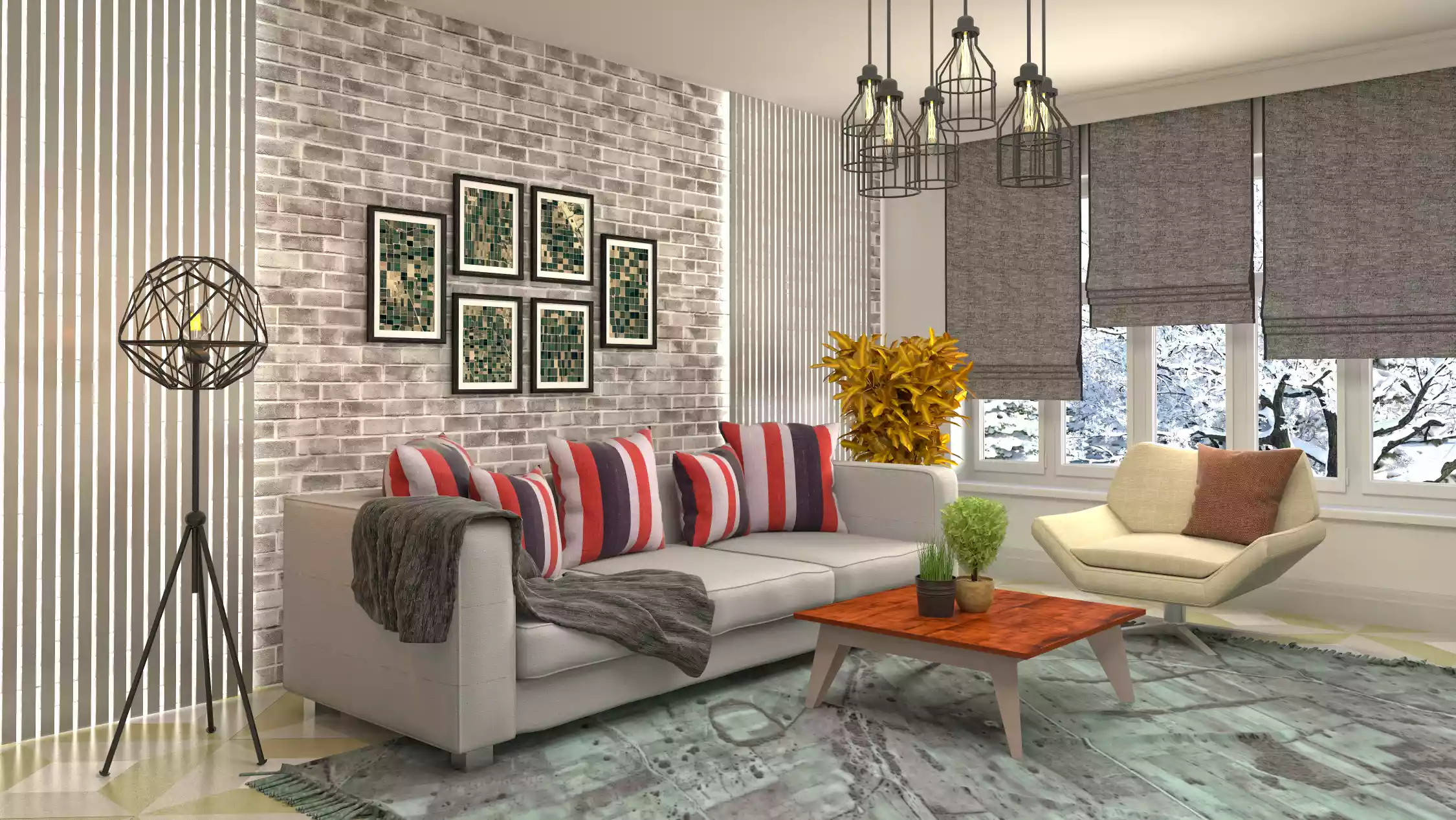 زي الرمادي والبيج عشان الديكور يبان متوازن.